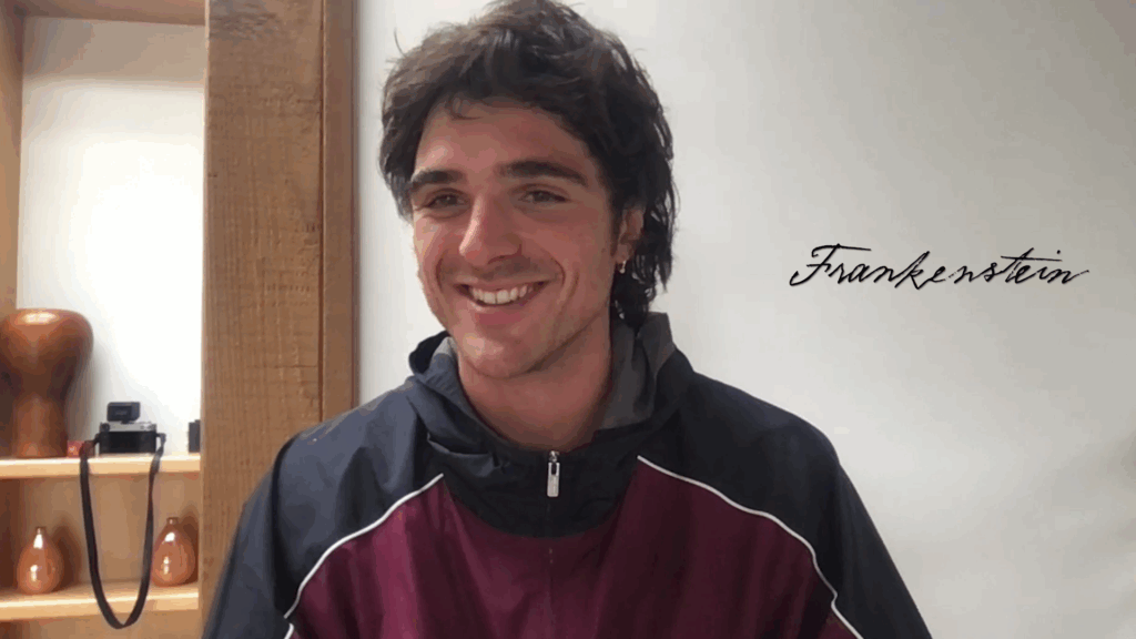 Jacob Elordi: Como não há diálogo no começo, é importante falar com o trabalho físico. Guillermo teve a ideia de me fazer estudar Butoh, que é essa dança japonesa da morte. É meio que sobre reanimar um cadáver. E, com [a dança], você aprende a transitar pelas emoções em um piscar de olhos. Quando o personagem finalmente fala e diz o nome do Victor, eu queria captar todo sentimento em apenas uma palavra.