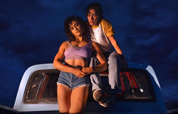 A principal diferença é que, ao contrário do filme de 1991, aqui há espaço para estabelecer o romance, para além da amizade. (O que é curioso se pensarmos a presença do filme em listas no Letterboxd como Shoulda been Gayer). Assim como o recente Rivais, a obra constrói uma sexualidade rica para as personagens e Glass compõe cenas de sexo esteticamente aprazíveis, com jogos de luzes amarelas e vermelhas, trilha de sintetizadores que remete ao período retratado, e que não omite as práticas eróticas das protagonistas. A sexualidade não se esconde, faz parte da identidade de ambas, da maneira como portam seus corpos e da forma como são apresentadas e desenvolvidas, funcionando tridimensionalmente. E tudo isso em uma narrativa que, apesar dos elementos noir e de romance, também não se furta de pontuar os acontecimentos com um humor pelo absurdo.