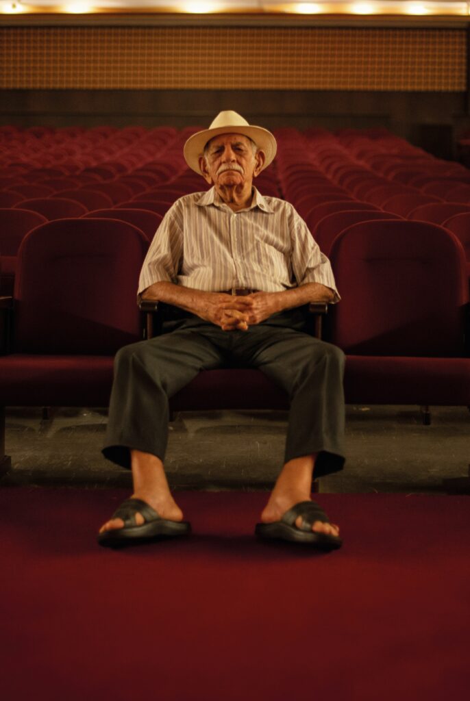 Camila: Eu estava pensando muito num outro filme que eu vi recentemente, não sei se você já assistiu, O Último Azul (2025), e eu senti que ele dialoga com o Seu Cavalcanti nessa saída do idoso daquela imagem do velhinho, sábio, fofinho, para a imagem de uma pessoa complexa, que tem vontades. Com 95 anos, ele gosta de pegar o carrinho dele e se sentir livre. E eu queria saber como foi para você construir esse retrato de um homem mais velho que ainda tem autonomia, que busca liberdade… Ele não para e vai dar conselho, aquela coisa clássica do idoso no cinema…